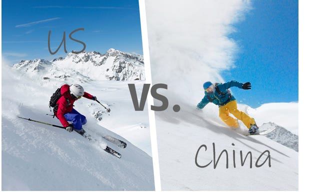 The analogy that occurred to us (sat in the Alps) was that after developing and owning the technology around skis, bindings and boots, the US has suddenly noticed that the Chinese just invented snowboarding. Same, but different. Quicker learning curve and a lot cheaper.