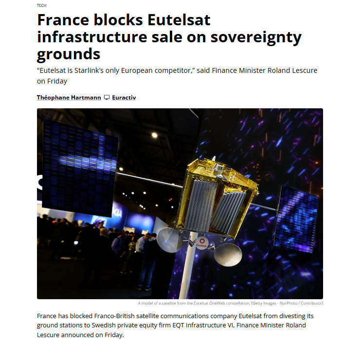 This involves not selling strategic assets to ‘foreign entities’ - and we notice that last week France blocked the sale of Eutelsat’s ground antenna business on Sovereignty grounds.
